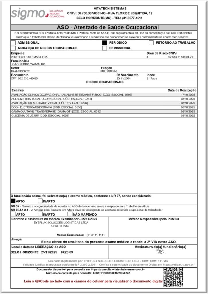 Assinatura eletrônica do profissional por meio de certificado digital padrão ICP BRASIL ou imagem digitalizada.