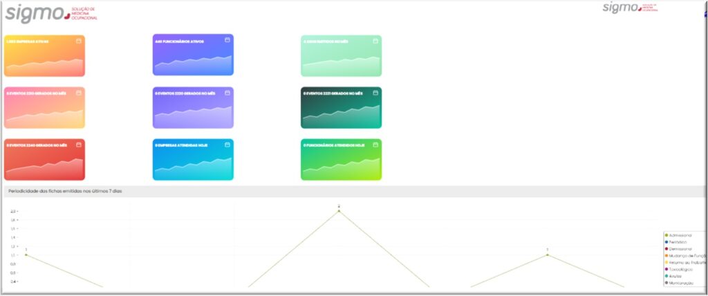 Dashboard e gráfico com as estatísticas da sua clinica.