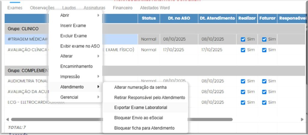 Seleção automática dos exames que devem ser realizados, de acordo com o PCMSO de cada empresa.