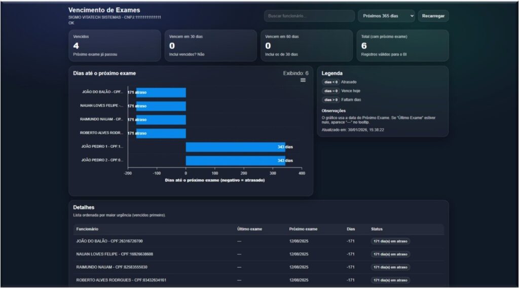 Documento gerado e encaminhado automaticamente para as empresas, informando os funcionários que possuem exames próximos do vencimento.